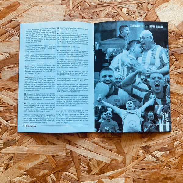 In this issue Seen Enough continues to examine the concept of 'tinpot trophies' - this time focusing on the much-maligned EFL Trophy. Featuring an interview with Andy Dawson (of Athletico Mince) this issue gets past the jokes about the 'tacky' sponsors and the accusations of poor quality to argue that there is absolutely nothing wrong with the competition.