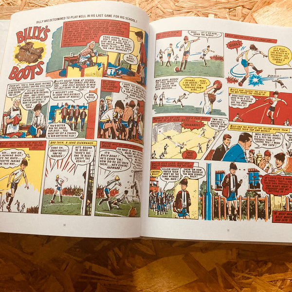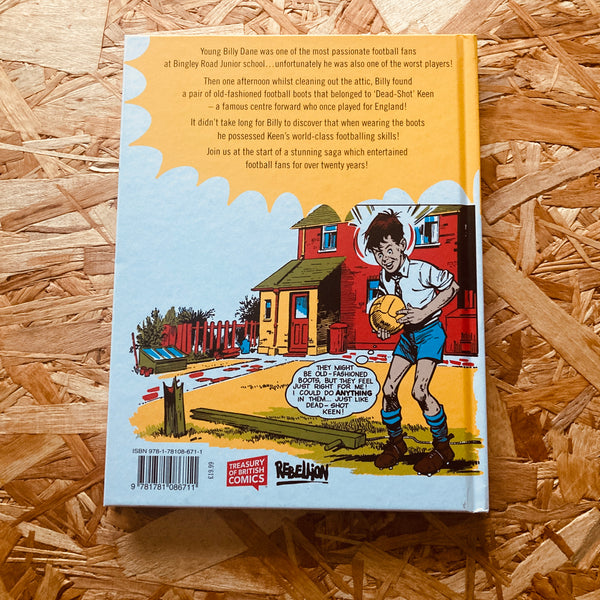 Young Billy Dane was one of the most passionate football fans at Bingley Road Junior school… unfortunately, he was also one of the worst players! Then, one afternoon, Billy’s grandmother got him to clean out her attic and Billy finds a pair of old fashioned football boots that belonged to ‘Dead-Shot’ Keen – a famous centre forward who once played for England.