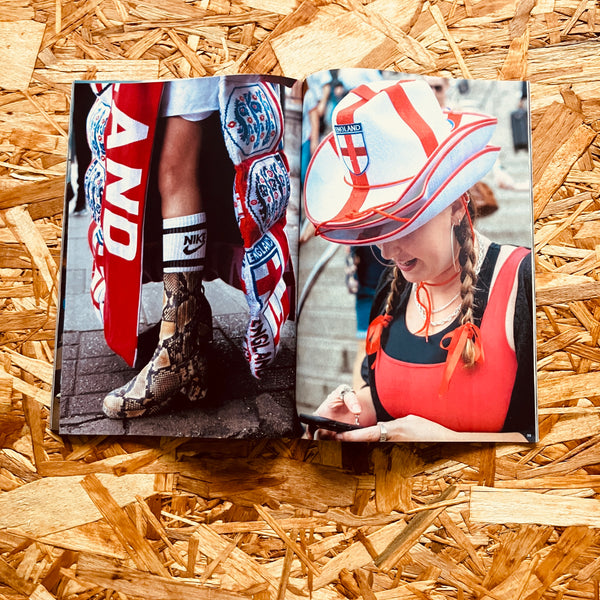 GIRLFANS England captures the experience of following the England men’s and women’s teams from the perspectives of women, girls and other underrepresented voices within the national fanbase. Through photography, writing and illustration, the zine documents the changing face of England’s football fandom from 2017–2025, culminating in the triumph of the Women’s Euros in 2025.