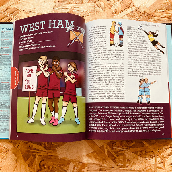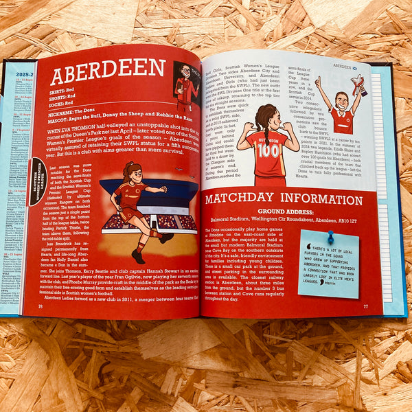 It covers all 24 teams in the WSL and WSL2, all 10 teams in the SWPL, all 8 in the ADRAN Premier, and all 8 in the NIFL Women's Premiership. There's a full list of fixtures for the 2025-2026 season, and a Team Tracker for you to record all the key details of your team's progress - scores, scorers and weekly league positions - in the weeks and months ahead.